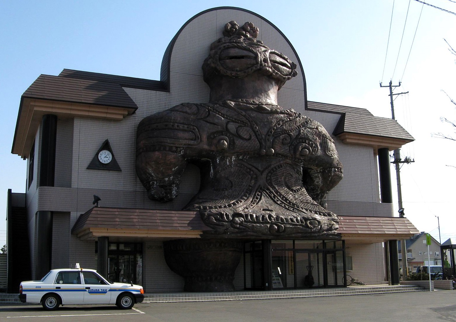 Two of such monuments can be found in the city of Tsugaru, in Aomori prefecture. The Kamegaoka Site, an archaeological site dating from the Final Jōmon (1,000–300 BCE), is located there. This site is important because it is the place where the most textbook-famous dogū (a goggle-eyed one with a broken leg; Fig. 9) was found back in 1887 (Tsugaru City Board of Education, 2018). One of the monuments is a simple statue (Fig. 10), as could be expected, but the city’s railway station (Fig. 11) is something else entirely!