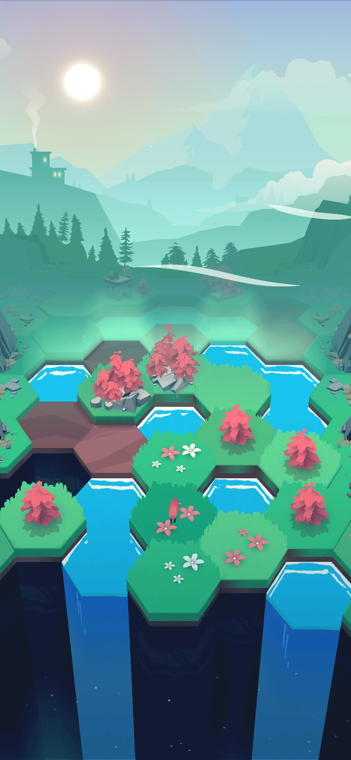 Trees that are next to each other can be combined to make a forest, which grows your world by adding a new row of land. In this way, the base relationship between water and trees are shown as being critical to growing a world. Groups of forests can be further combined to make a house, which introduces humans as part of the ecosystem in Valleys Between. While this is an incredibly simplified representation of nature to a few small mechanics in Valleys Between, it’s part of what makes it feel environmentally rich.