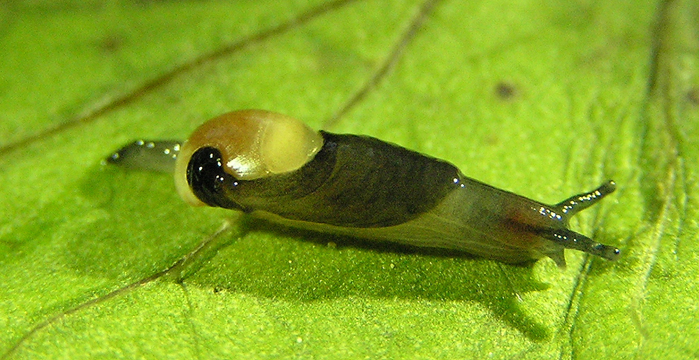 Sliggoo has a spiral “hump” of sorts, which resembles a vestigial shell found in the so-called semi-slugs. These gastropods are, so to speak, halfway through the process of limacization.