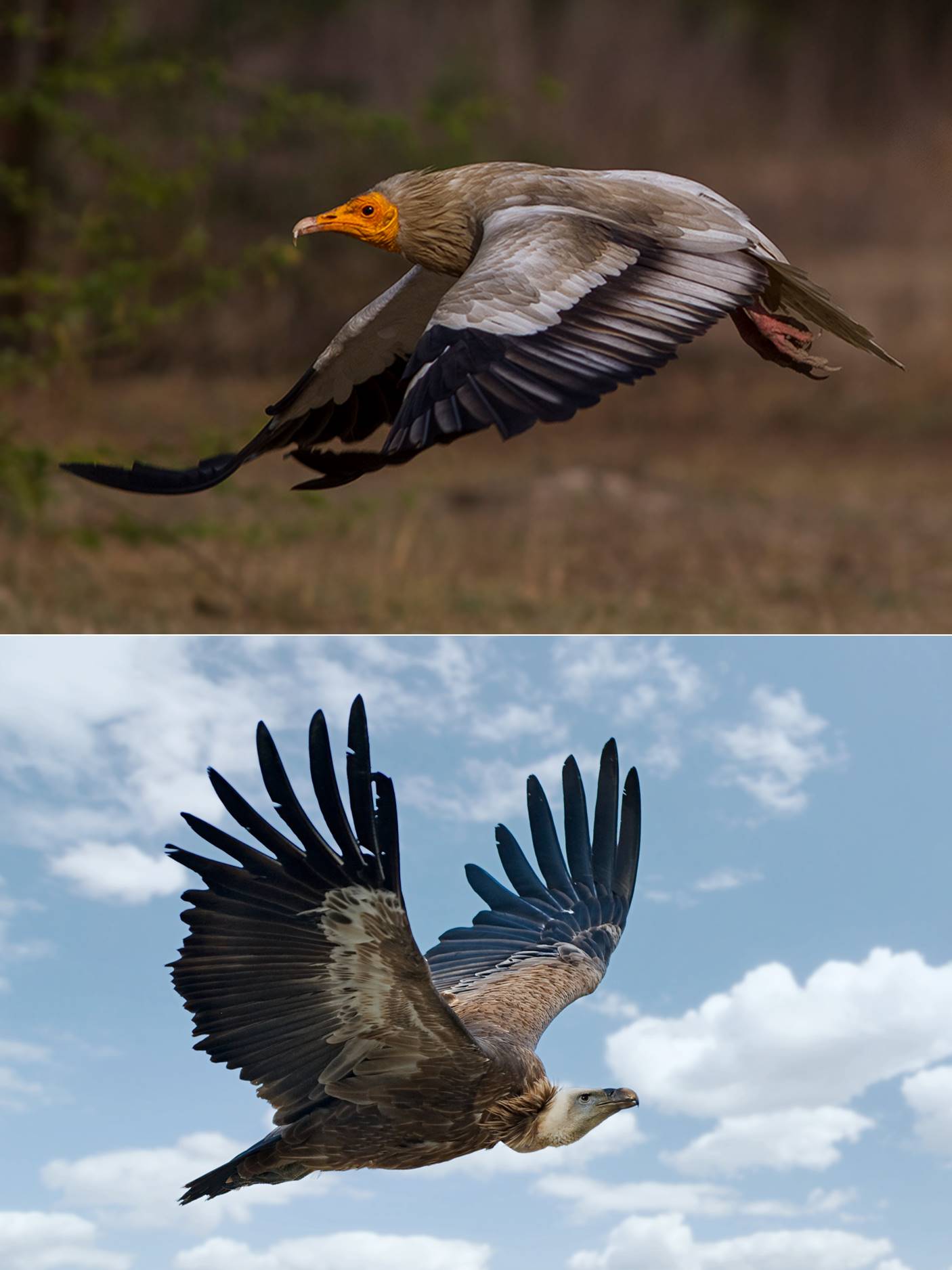 The popular name vulture actually refers to 23 species worldwide, distributed in two distinct yet closely related biological groups (Buechley & Sekercioglu, 2016): the Old World vultures (Fig. 7) and the New World vultures (Fig. 8). Old World vultures belong to the family Accipitridae, the same as eagles and hawks, while the New World ones (which include condors) comprise the family Cathartidae. The scavenging habits of vultures evolved independently in these two lineages and in both cases has led to some common adaptations to this way of life: large bodies and wings, powerful beaks and featherless heads (Buechley & Sekercioglu, 2016).