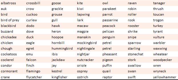Well, we need to count our birds! For this project, we decided to use a static list of bird names commonly used in cultural works. The list can be seen in Table 2.