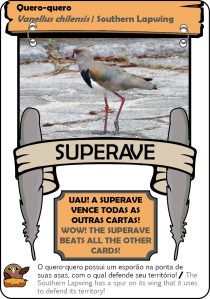 In addition to the common bird cards, there are two instructional cards (one of rules and one explaining what each bit of information on the cards represents) and one special card that beat the others, called SUPERAVE. Naturally, it is important that, as an educational tool, the teacher or mediator who applies the game clearly explains that one bird isn’t better than another.