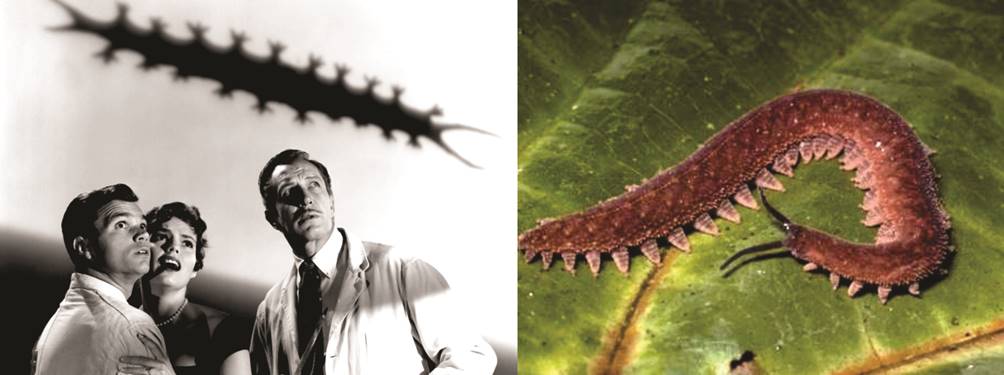 Among the most bizarre animal choices for a horror movie are The Tingler (1959), about a velvet worm-like parasitic creature (Fig. 5), Night of the Lepus (1972), about mutated giant rabbits, and Psycho Pike (1992), about a large aggressive pike.