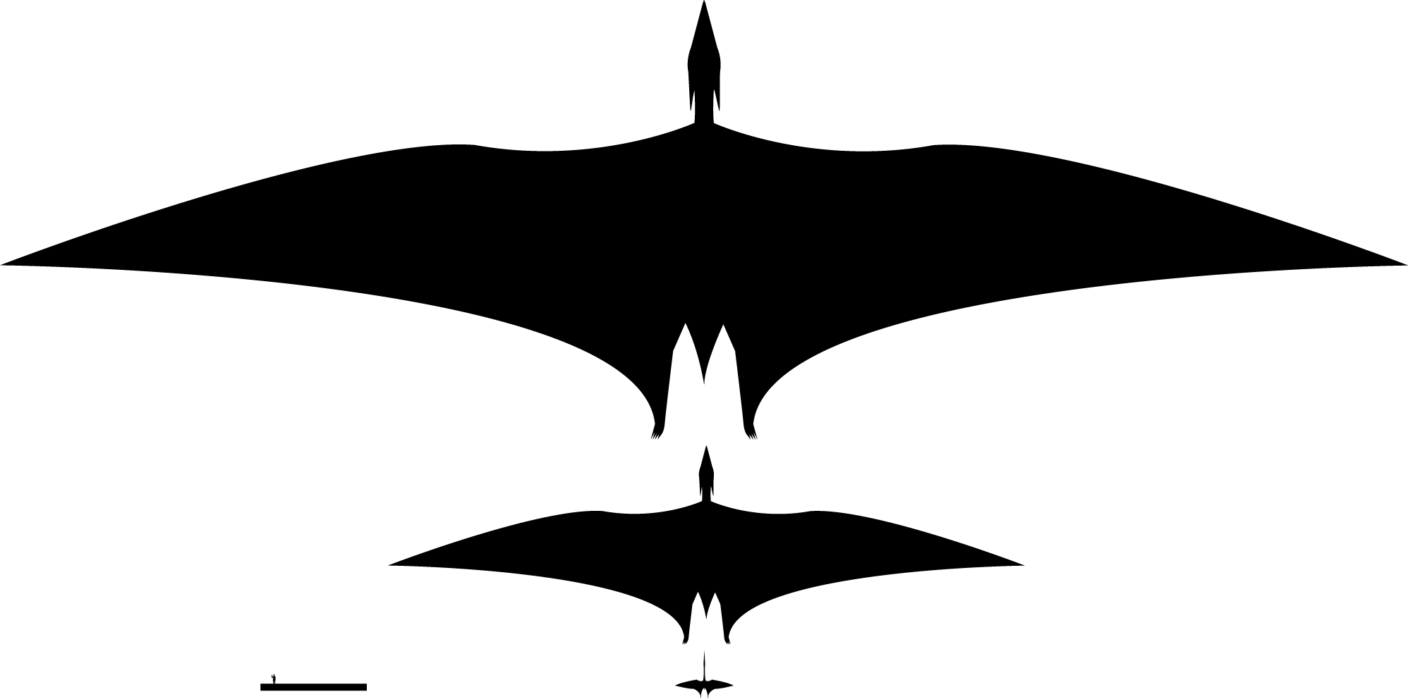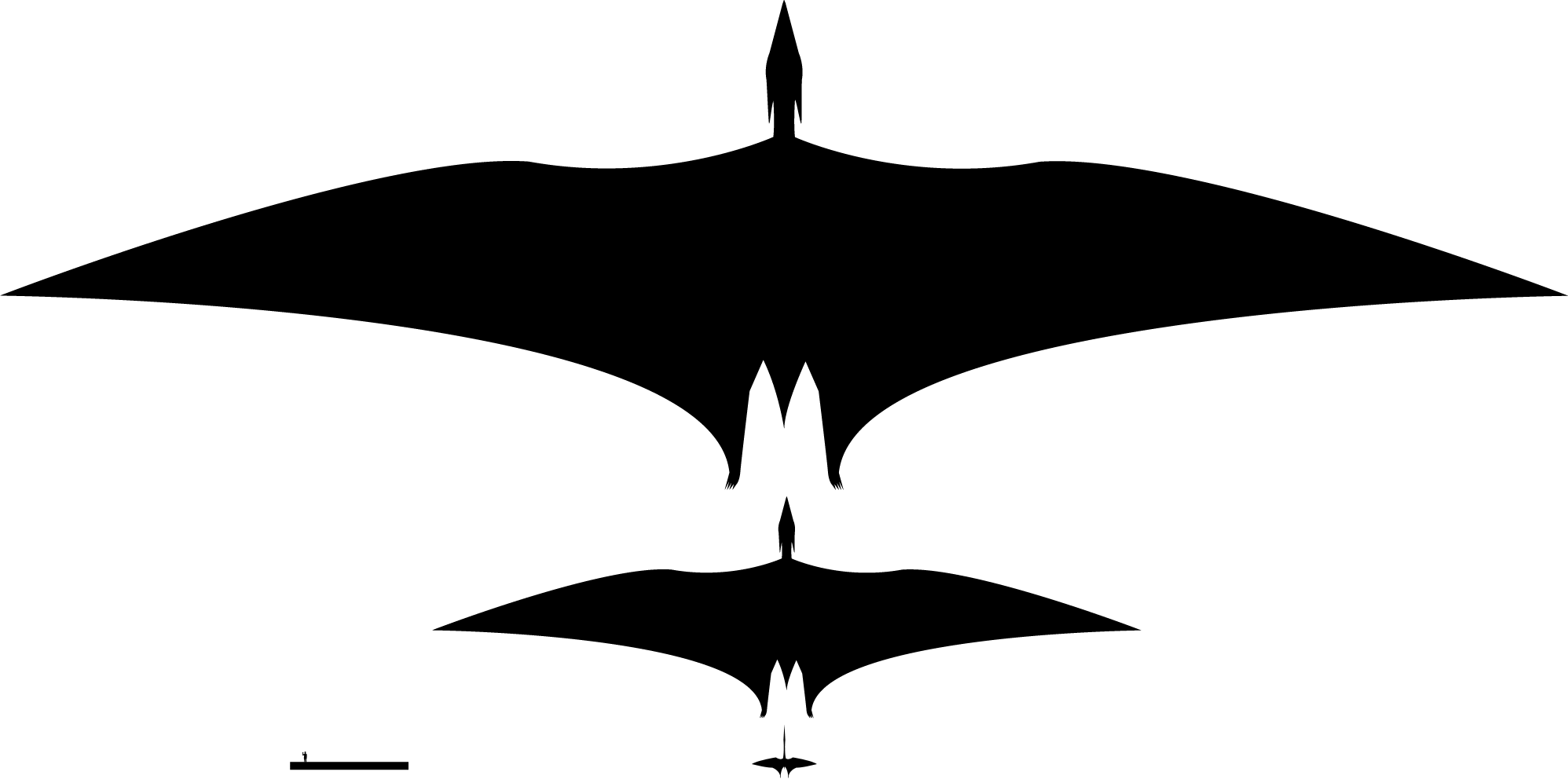 Of course, given the first movie starring Rodan came out in 1956, when Pterosaurology was still in its infancy, it is by no means an accurate depiction of a pterosaur. The first difference, obviously, is size. Depending on the incarnation, Rodan has a wingspan between 120 and 265 meters (Table 1 and Fig. 3; Wikizilla, 2019). The very largest pterosaurs belonged to family Azhdarchidae, with giants such as Quetzalcoatlus and Arambourgiania (Fig. 2) reaching roughly 11-meter wingspans. This is near the largest estimated size a pterosaur can get and be able to launch itself off the ground and stay airborne (Witton & Habib, 2010). Rodan is also very different proportionally from the largest pterosaurs known. Azhdarchids generally had giant heads, long necks, very long limbs, and tiny, tiny bodies (Habib, 2019). Rodan, in contrast, has relatively short limbs and a long torso. Given from 1956 to 2004 he was portrayed by the “suitmation” typical of tokusatsu movies (Fig. 1), this is understandable from an out-of-universe perspective.
