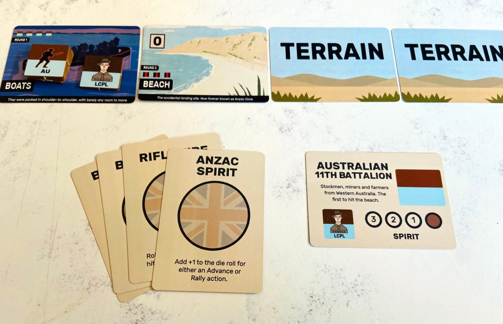The famed Anzac Cove was never actually meant to be the landing zone for the invasion. So, the maps and orders that the officers had for their soldiers were off from the get go. The random nature of the Terrain cards is meant to represent this. The player has an idea of where they need to go, but they don’t know what stands between them and their objective. Game design is an art, but historical game design also requires thorough research and historical fidelity.