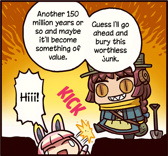 In FGO/LWM, Mary Anning is said to have an abiding love of women and a murderous attitude (Fate/Grand Order Wikia, 2021). The former is shown by Anning being smitten with Artoria at first sight in the manga. That comes as no surprise, as we all know that LWM is a huge Yuri Singularity. As I mentioned above regarding Ammonite, many people who have nothing better to do complained about Anning’s portrayal as a lesbian in the movie. Thankfully, they don’t play FGO, so we don’t need to listen to their drivel here.