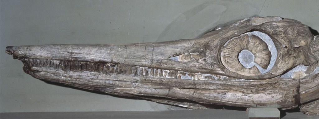 Ichthyosaurs (Order Ichthyosauria) were marine reptiles. They were completely unrelated to dinosaurs, by the way, although their actual position within the tree of life remains contentious. There are around 50 genera of ichthyosaurs known (Maisch, 2010) and they lived during the Mesozoic Era, from roughly 250 to 90 Ma (millions of years ago). Anning’s fossils date from the Early Jurassic, circa 200 to 175 Ma. When alive, these animals could range from 1 to 15 m in length, and – broadly speaking – would have lived pretty much like dolphins (Dick & Maxwell, 2015).