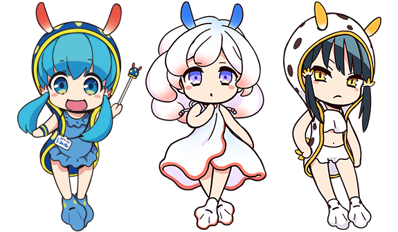 The mascots of Awashima Marine Park (あわしまマリンパーク, in Numazu; Fig. 18) are a pair of umiushi siblings named Umine Awashima (淡島 うみね) and Otome Awashima (淡島 おとめ).[19] Their designs were inspired, respectively, by the fan-favorite Hypselodoris festiva (Fig. 3) and Dermatobranchus albopunctulatus. The latter is a species of otome umiushi, of course. A third mascot, and friend to the siblings, is Mashiro Uchiura (内浦 ましろ), whose design was based on Hypselodoris placida.