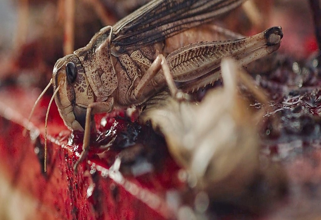The Swarm (2021) portrayed locusts as hematophagous and carnivorous even though locusts are mainly herbivores (they belong to the family of short-horned grasshoppers Acrididae, in the order Orthoptera). Furthermore, the films paints insect production for food in a terrible light. Desert locusts (Schistocerca gregaria) are often considered the world’s most devastating pests, as they are very mobile and can turn an agricultural field into a deserted land (Bullen, 1966). The “fight back plan” against these dangerous pests could involve rearing or harvesting them for food and feed, which is something several nations across the globe are starting to practice (Egonyu et al., 2021).