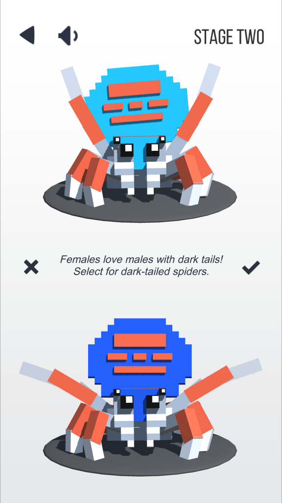And when a perfect organism doesn’t exist, we make one up! That’s what we’ve done in Xenon Crowe and Cha Cha Island. The way we move forward in games is really similar to my research – we use the organism that best tells the story. I used to work on birds, but I have done most of my research exploring mate choice and evolution using spiders and crickets. And now my students are working on mites. Researching a variety of organisms keeps it fun!
