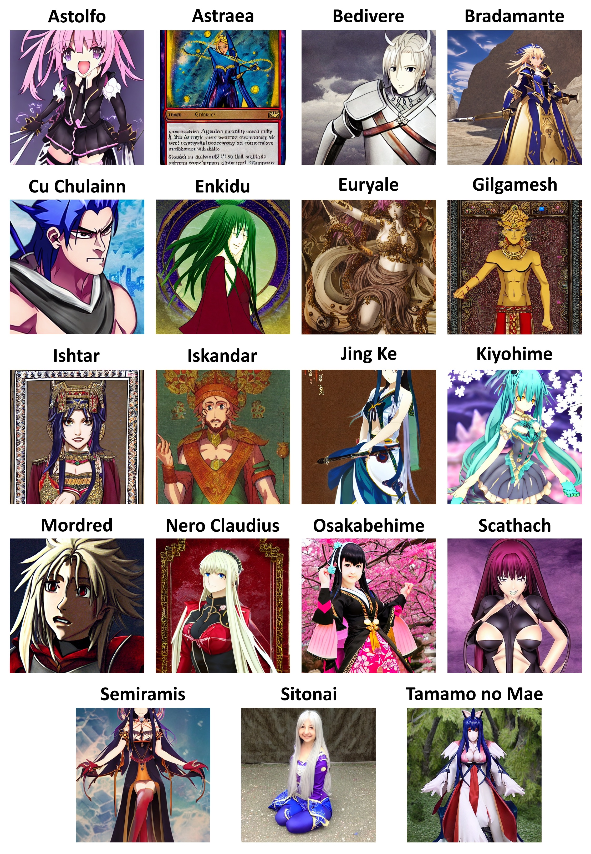 Using this container, we generated images for a series of historical and mythological figures that are present in FGO, using the following command:
