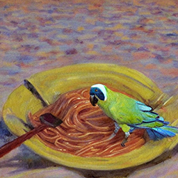 | ./build.sh run “An impressionist painting of a parakeet eating spaghetti in the desert” |