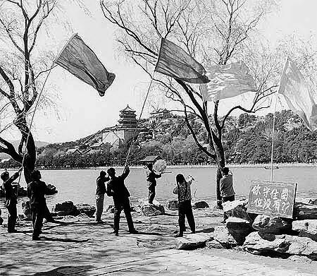 Mao’s government then bombarded its people with collectivist slogans, pseudo-scientific rhetoric, and propaganda posters (Fig. 5), inciting citizens to take up arms against the pests (Sun, 2017). They encouraged people to band together in task forces or “sanitation teams” and kill each and every single pest they found (Sun, 2017). To deal with the sparrows, people shot or slingshot them, set traps, and climbed on trees (including during the night) to strangle the birds, break their eggs, and destroy their nests. People would also station themselves on roofs and under trees, constantly waving flags, beating drums, and clanging pots and pans to terrorize the sparrows (Fig. 6). The noise and commotion prevented the birds from landing, forcing them to keep flying around and eventually making them die of exhaustion.