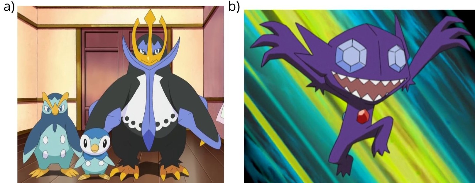 A Pokémon’s development is primarily measured in two ways: through its evolutionary progression or by its level. Unlike real-world evolutionary biology, evolution in Pokémon is not a gradual process of adaptation; instead, it involves an abrupt metamorphosis into a stronger form while retaining essential traits from its evolutionary line (Fig. 2a); however, not all Pokémon evolve, which makes level progression their main indicator of strength (Fig. 2b). A Pokémon’s level increases as it gains experience from battles, thereby improving its overall stats and combat potential. As in most role-playing video games (RPGs), defeating Pokémon grants experience, and crossing a certain threshold increases the Pokémon’s level.